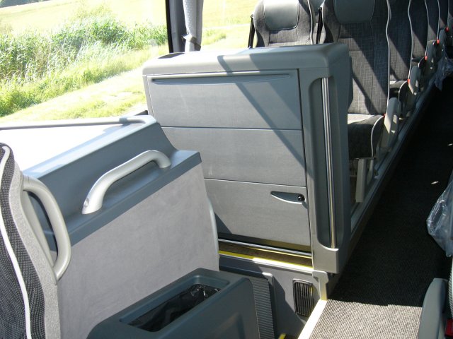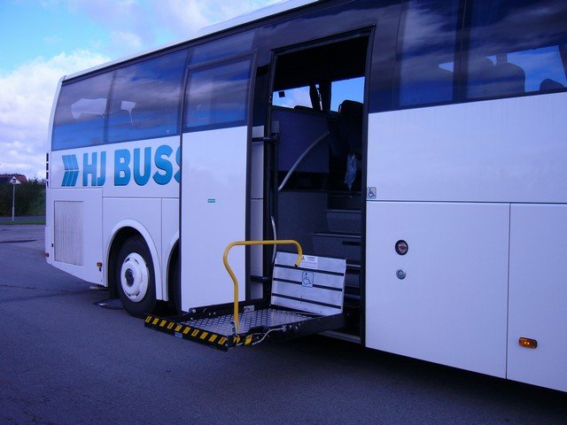 Våra bussar har bekväma fällbara stolar och justerbara fotstöd. Det går även att skjuta ut dem i sidled. Flera av bussarna har handikapplift.